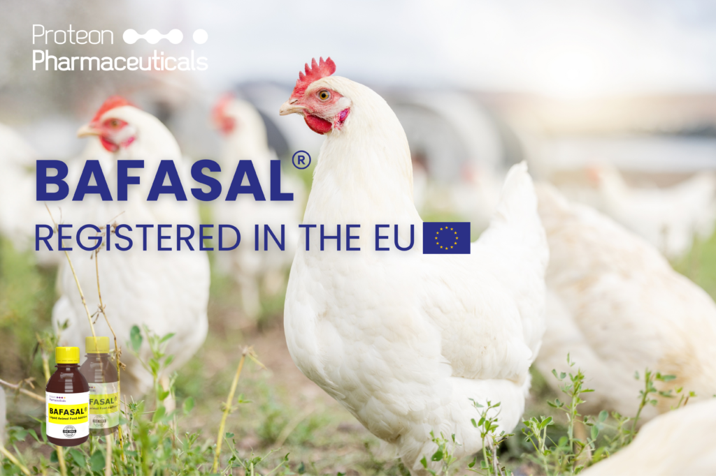 A Proteon Pharmaceuticals tem a satisfação de confirmar que o BAFASAL®, seu inovador aditivo alimentar àbase de bacteriófagos, recebeu aprovação regulatória completa da União Europeia para uso em aves. A